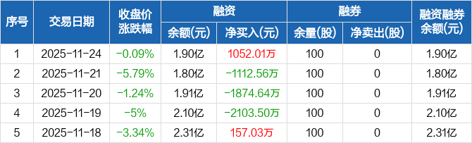 同飞股份:融资净买入1052.01万元,融资余额1.9亿元(11-24)