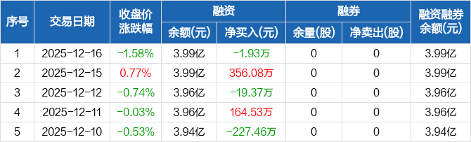 创益通:融资净偿还1.93万元,融资余额3.99亿元(12-16)