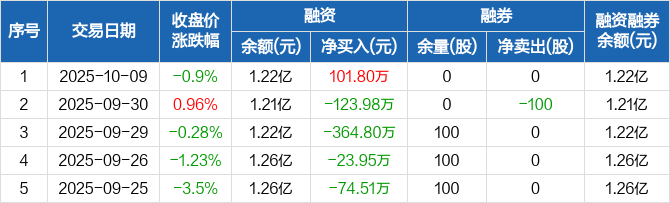久祺股份:融资净买入101.8万元,融资余额1.22亿元(10-09)