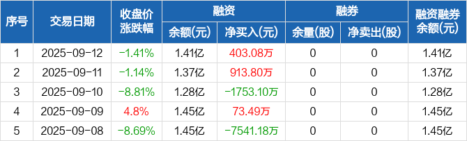 奇德新材:融资净买入403.08万元,融资余额1.41亿元(09-12)