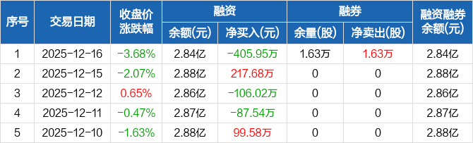 普联软件:融资净偿还405.95万元,融资余额2.84亿元(12-16)