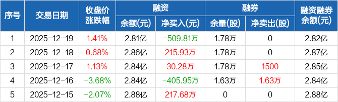 普联软件:融资净偿还509.81万元,融资余额2.81亿元(12-19)