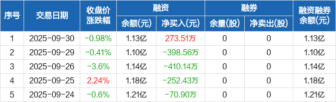 宁波方正:融资净买入273.51万元,融资余额1.13亿元(09-30)