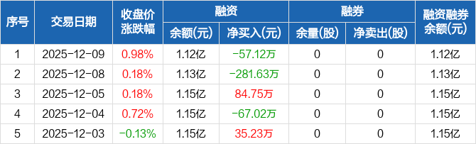 宁波方正:融资净偿还57.12万元,融资余额1.12亿元(12-09)