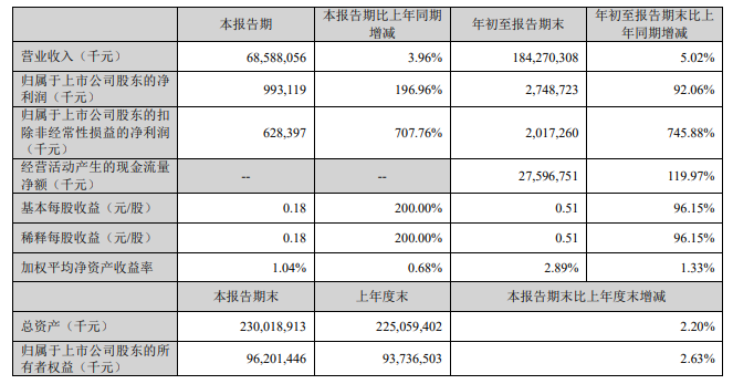 2025年前三季度,公司业绩大幅回暖,实现营业收入1842.70亿元,同比增长5.02%;归母净利润为27.49亿元,同比增长92.06%;扣非归母净利润为20.17亿元,同比增长745.88%。