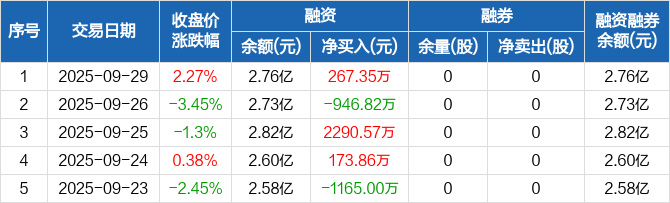 肇民科技:融资净买入267.35万元,融资余额2.76亿元(09-29)