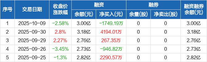 肇民科技:融资净偿还1749.19万元,融资余额3亿元(10-09)