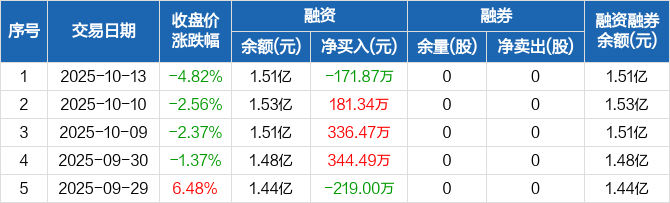 崧盛股份:融资净偿还171.87万元,融资余额1.51亿元(10-13)