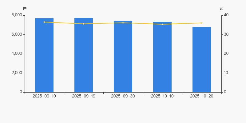 自2025年9月19日以来,公司股东户数连续3期下降,截至目前减幅为12.20%。2025年9月19日至2025年10月20日区间股价上涨1.32%。