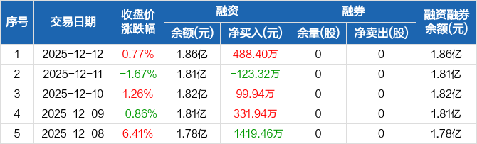 江苏博云:融资净买入488.4万元,融资余额1.86亿元(12-12)