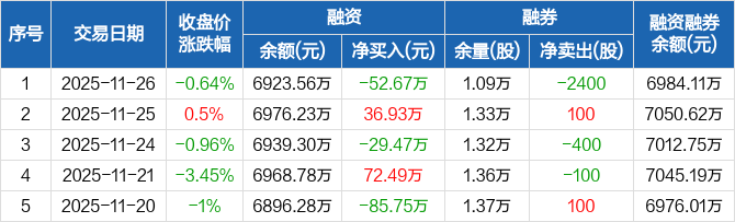嘉益股份:融资净偿还52.67万元,融资余额6923.56万元(11-26)