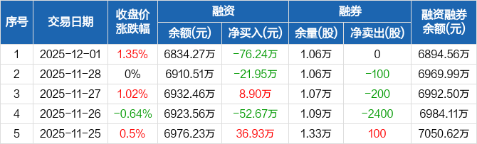 嘉益股份:融资净偿还76.24万元,融资余额6834.27万元(12-01)
