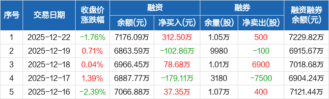 嘉益股份:融资净买入312.5万元,融资余额7176.09万元(12-22)