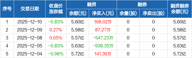 德迈仕:融资净买入168.02万元,融资余额5.6亿元(12-10)