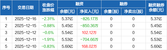 德迈仕:融资净偿还826.17万元,融资余额5.37亿元(12-16)
