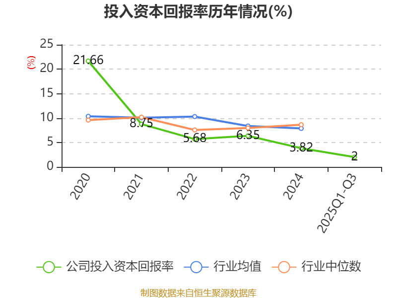 盈利能力方面, 2025年前三季度公司加权平均净资产收益率为1.99%,同比下降1.79个百分点。公司2025年前三季度投入资本回报率为2%,较上年同期下降1.12个百分点。