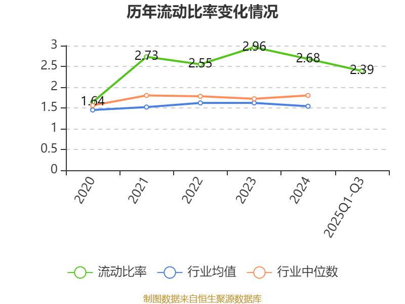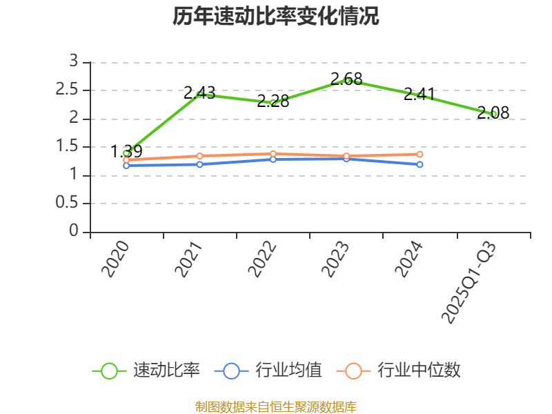 2025年前三季度,公司流动比率为2.39,速动比率为2.08。