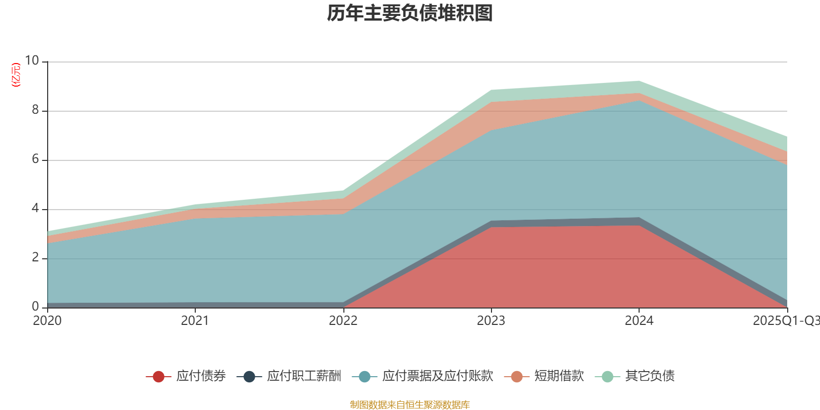 负债重大变化方面,截至2025年三季度末,公司应付债券较上年末减少100%,占公司总资产比重下降16.25个百分点;应付票据及应付账款较上年末增加15.55%,占公司总资产比重上升1.86个百分点;短期借款较上年末增加82.96%,占公司总资产比重上升1.04个百分点;其他流动负债较上年末增加148.54%,占公司总资产比重上升0.52个百分点。