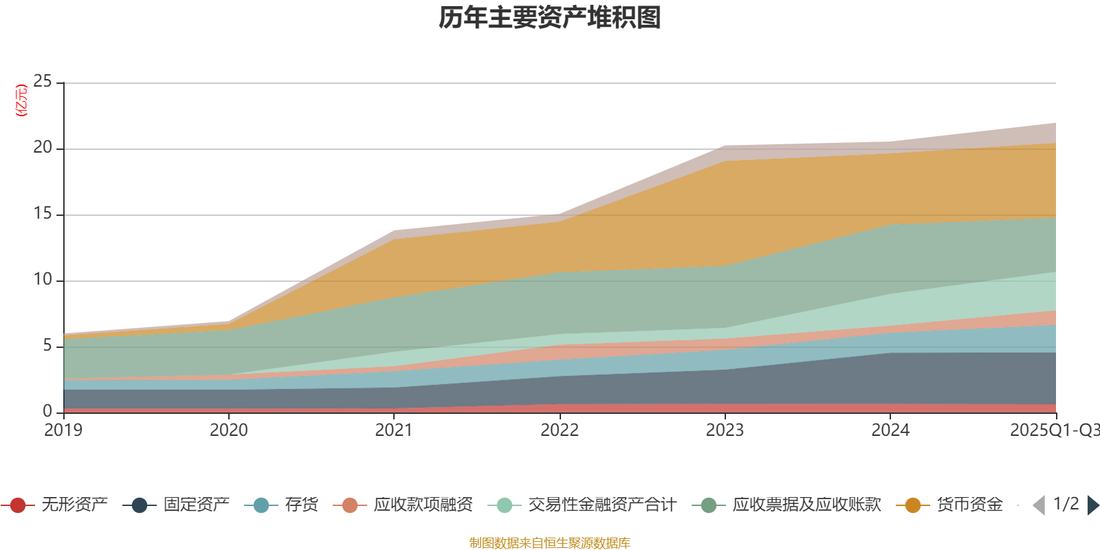 资产重大变化方面,截至2025年三季度末,公司应收票据及应收账款较上年末减少21.96%,占公司总资产比重下降6.93个百分点;应收款项融资较上年末增加106.71%,占公司总资产比重上升2.45个百分点;存货较上年末增加36.4%,占公司总资产比重上升2.04个百分点;交易性金融资产合计较上年末增加21.33%,占公司总资产比重上升1.57个百分点。