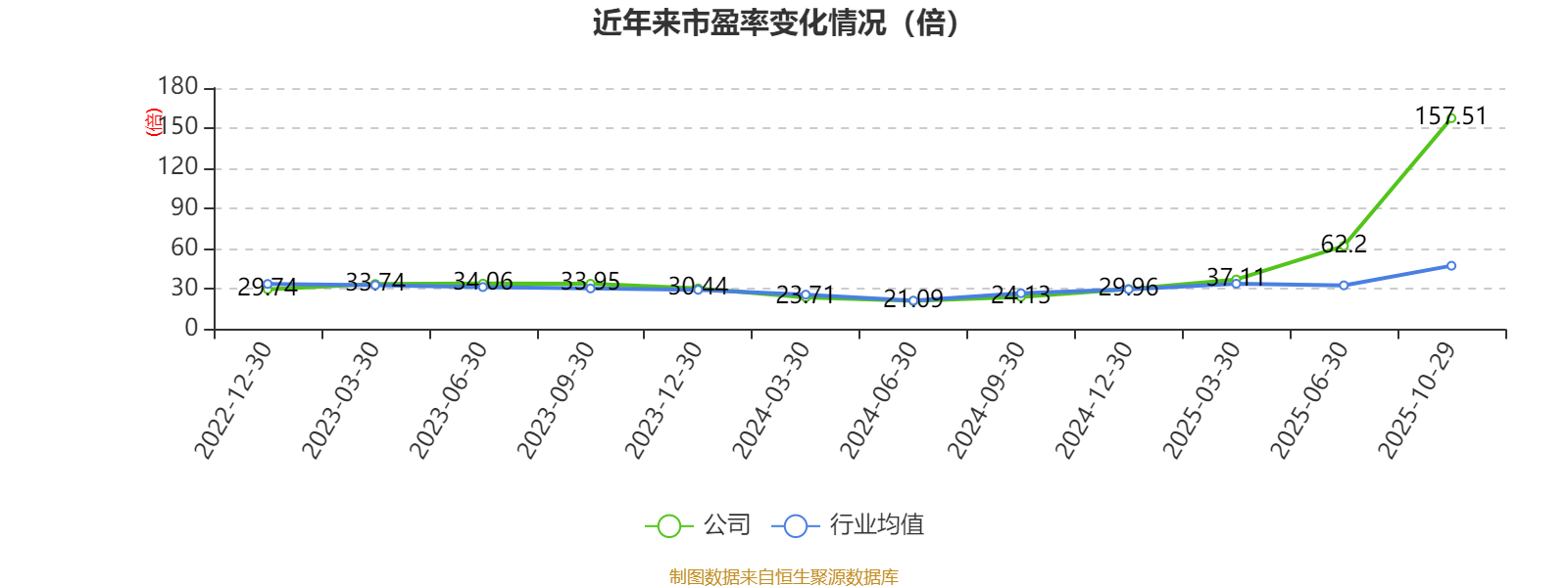 以10月29日收盘价计算,宏昌科技目前市盈率(TTM)约为157.51倍,市净率(LF)约3.57倍,市销率(TTM)约4.66倍。