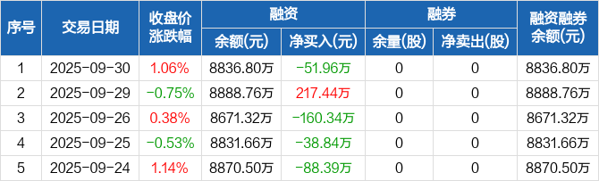 可靠股份:融资净偿还51.96万元,融资余额8836.8万元(09-30)