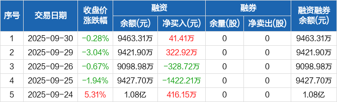 华立科技:融资净买入41.41万元,融资余额9463.31万元(09-30)