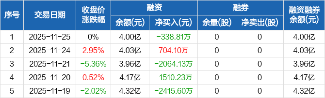 扬电科技:融资净偿还338.81万元,融资余额4亿元(11-25)