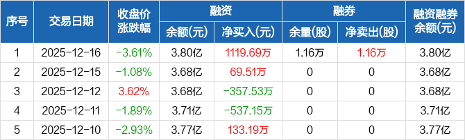 扬电科技:融资净买入1119.69万元,融资余额3.8亿元(12-16)