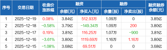 扬电科技:融资净买入512.93万元,融资余额3.84亿元(12-19)