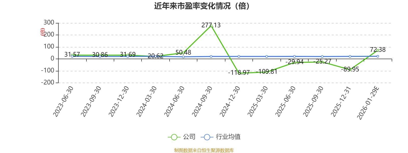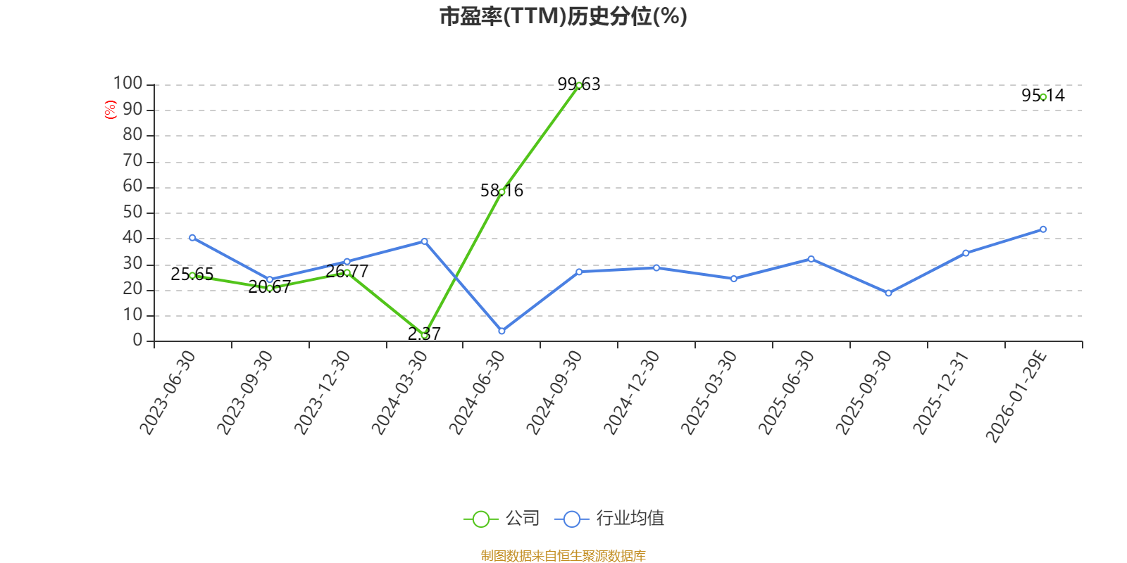 市盈率、市净率为负时,不显示当期分位数,会导致折线图中断。
