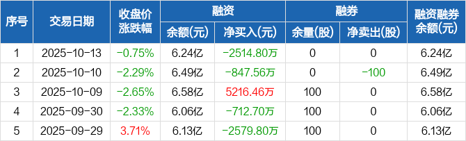 申菱环境:融资净偿还2514.8万元,融资余额6.24亿元(10-13)
