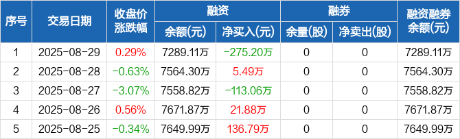宁波色母:融资净偿还275.2万元,融资余额7289.11万元(08-29)