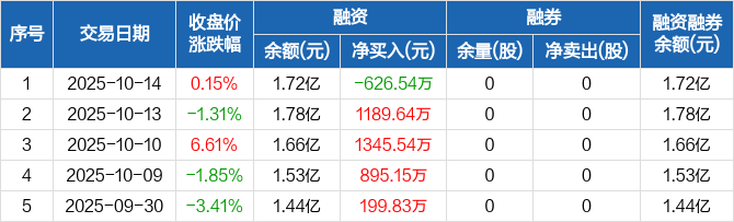 宁波色母:融资净偿还626.54万元,融资余额1.72亿元(10-14)