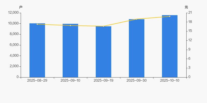 截至2025年10月10日,公司最新总股本为1.68亿股,其中流通股本为1.11亿股。户均持有流通股数量由上期的1.03万股下降至9632股,户均流通市值19.12万元。