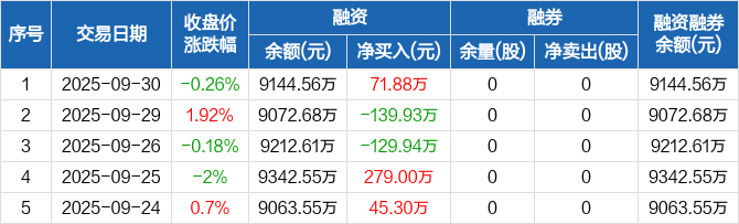 密封科技:融资净买入71.88万元,融资余额9144.56万元(09-30)