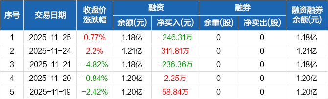 海泰科:融资净偿还246.31万元,融资余额1.18亿元(11-25)