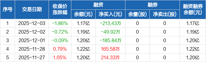 海泰科:连续3日融资净偿还累计449.19万元(12-03)