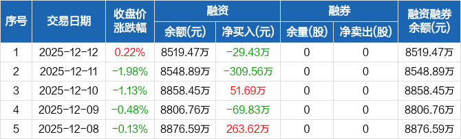 江南奕帆:融资净偿还29.43万元,融资余额8519.47万元(12-12)