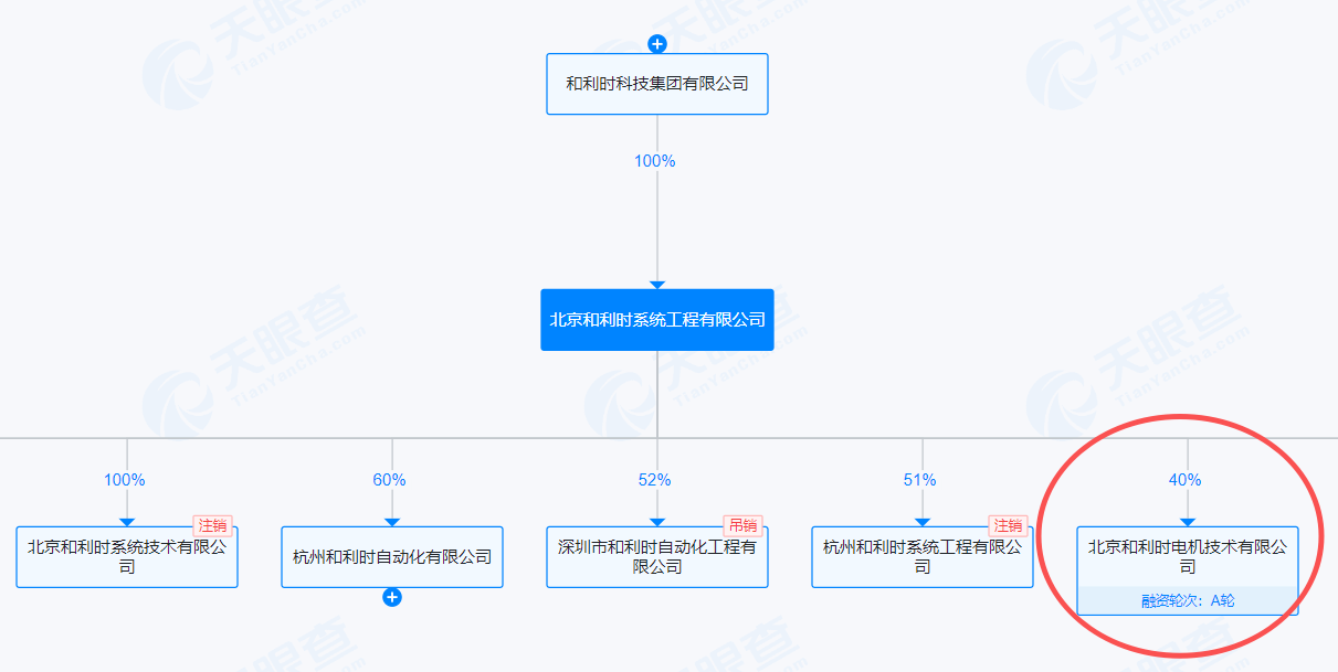 标的和利时电机的持股情况。图片来源:天眼查