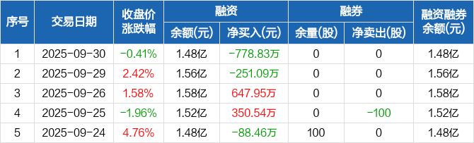 浩通科技:融资净偿还778.83万元,融资余额1.48亿元(09-30)