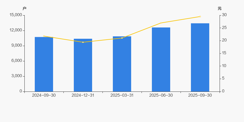 截至2025年9月30日,公司最新总股本为1.58亿股,其中流通股本为1.12亿股。户均持有流通股数量由上期的8858股下降至8317股,户均流通市值24.53万元。