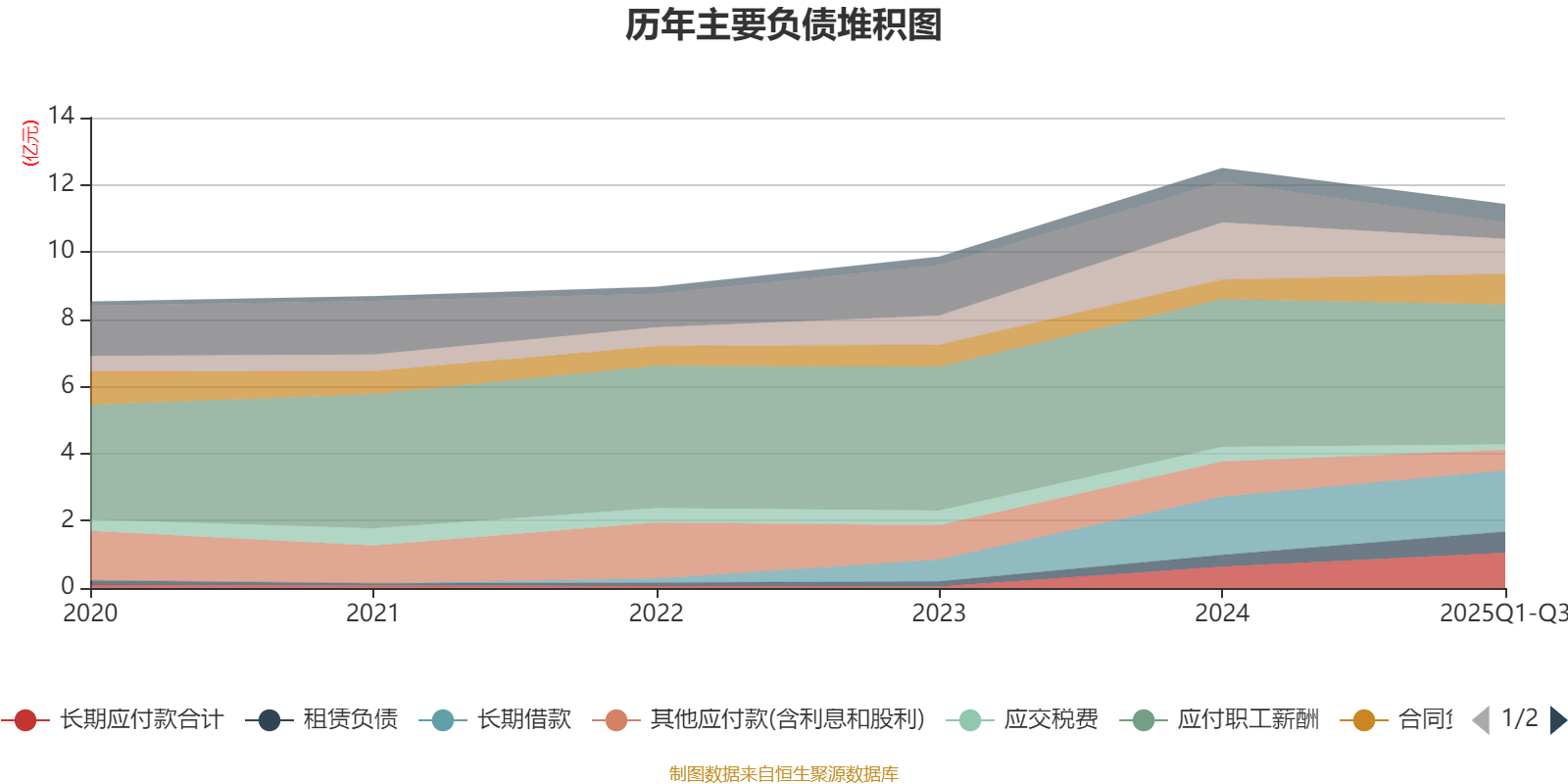 负债重大变化方面,截至2025年三季度末,公司短期借款较上年末减少58.32%,占公司总资产比重下降3.06个百分点;应付票据及应付账款较上年末减少38.95%,占公司总资产比重下降2.78个百分点;长期应付款合计较上年末增加66.95%,占公司总资产比重上升2.12个百分点;其他应付款(含利息和股利)较上年末减少41.29%,占公司总资产比重下降1.83个百分点。