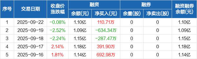 东亚机械:融资净买入110.71万元,融资余额1.1亿元(09-22)
