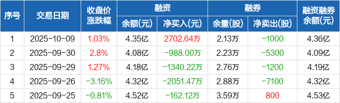怡合达:融资净买入2702.64万元,融资余额4.35亿元(10-09)