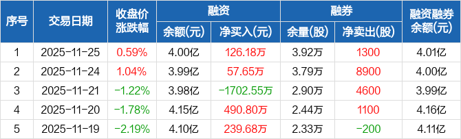 怡合达:融资净买入126.18万元,融资余额4亿元(11-25)