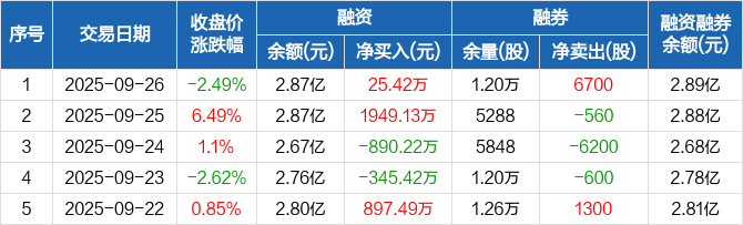 中熔电气:融资净买入25.42万元,融资余额2.87亿元(09-26)