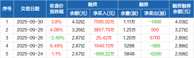 中熔电气:融资余额4.02亿元,创历史新高(09-30)