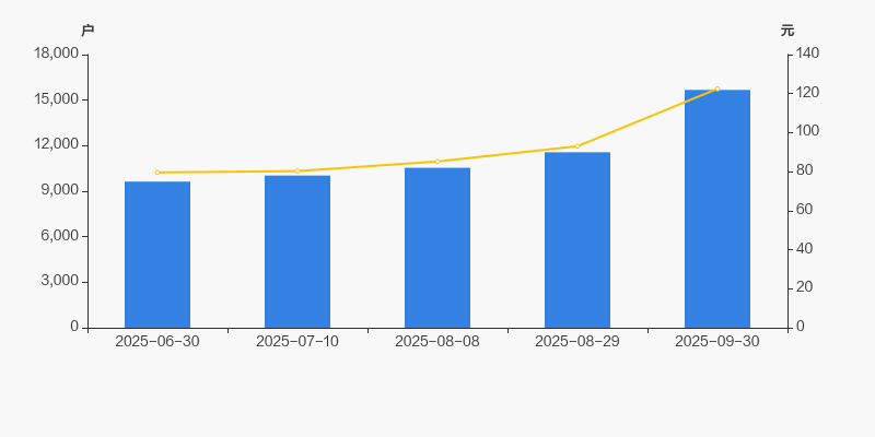 2025年6月30日至今,公司股东户数显著大幅增长,区间涨幅达62.75%。2025年6月30日至2025年9月30日区间股价上涨53.90%。