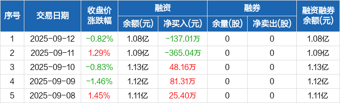 双乐股份:融资净偿还137.01万元,融资余额1.08亿元(09-12)