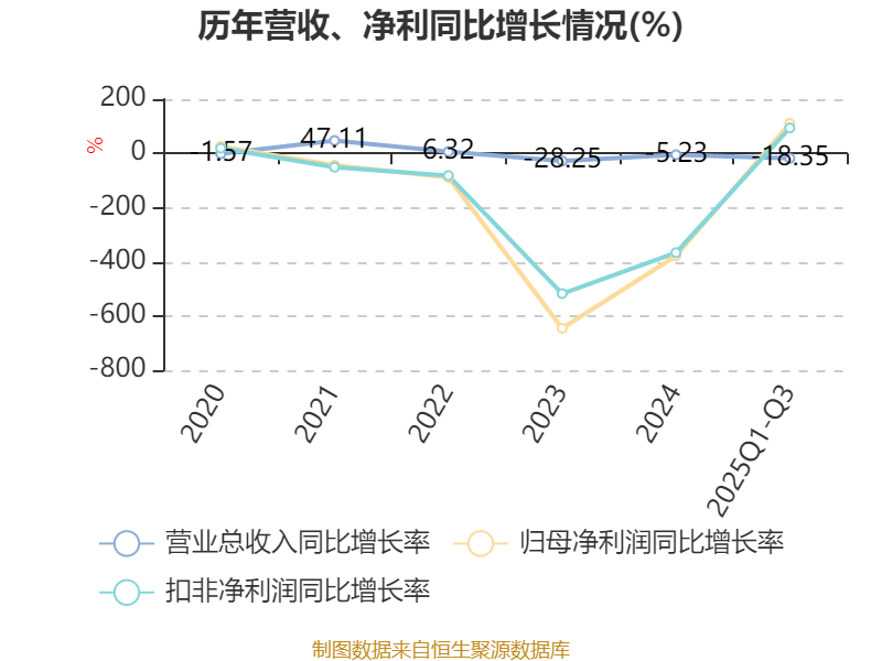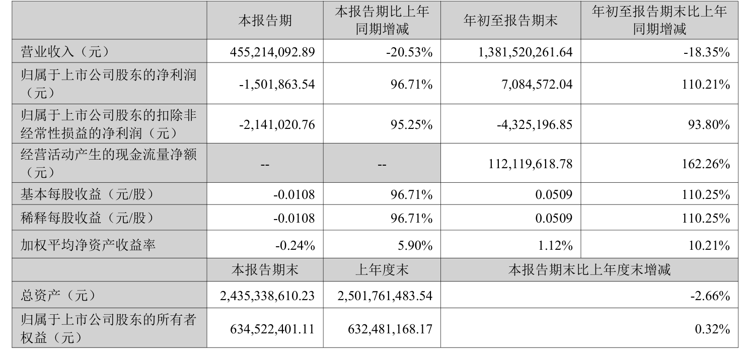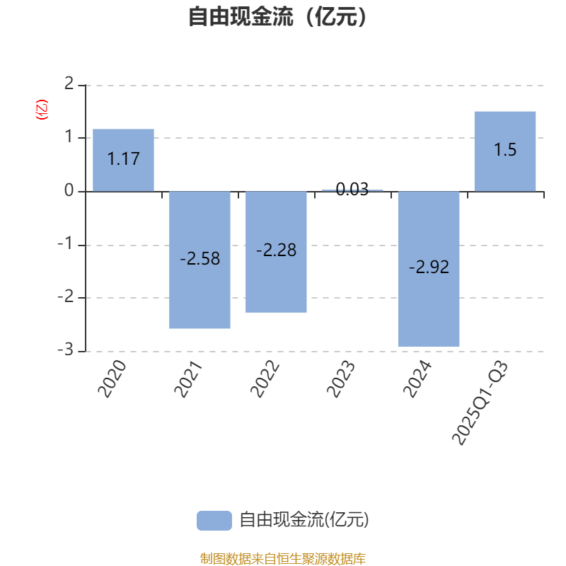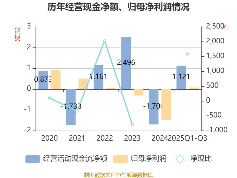 2025年前三季度,公司经营活动现金流净额为1.12亿元,同比增加2.92亿元;筹资活动现金流净额-1.48亿元,同比减少3.03亿元;投资活动现金流净额507.99万元,上年同期为-1.06亿元。